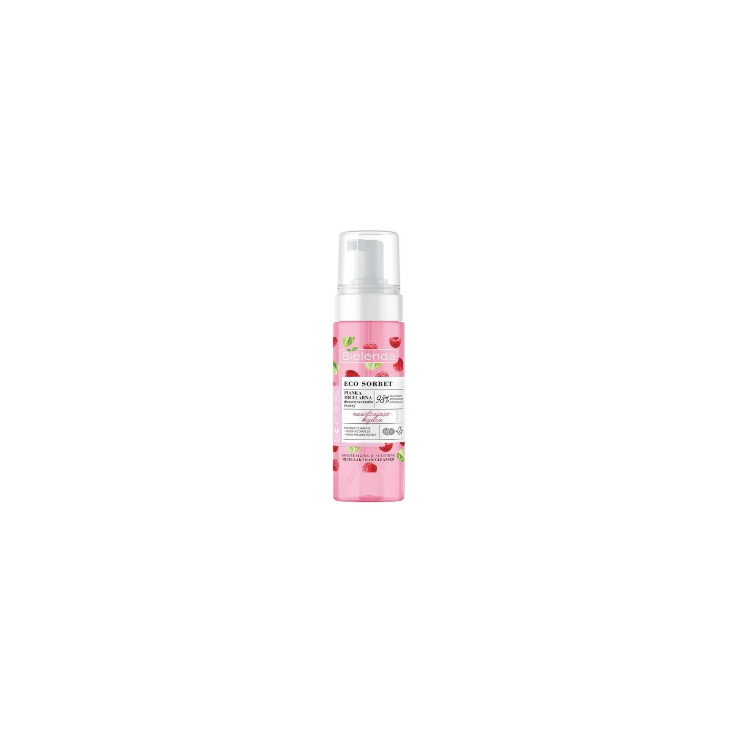 Micelarna pianka do mycia twarzy Bielenda z linii Eco Sorbet o zapachu soczystej maliny to delikatny kosmetyk przeznaczony do codziennego oczyszczania skóry. Lekka, puszysta formuła skutecznie usuwa makijaż, zanieczyszczenia i nadmiar sebum, jednocześnie pielęgnując skórę. Pianka działa nawilżająco i kojąco, dzięki czemu skóra po oczyszczeniu pozostaje miękka, gładka i przyjemnie odświeżona, bez uczucia ściągnięcia. Formuła inspirowana naturalnymi składnikami wspiera regenerację skóry i pomaga zachować jej zdrowy, promienny wygląd. Produkt idealnie sprawdzi się w codziennej pielęgnacji każdego typu cery, szczególnie suchej i wrażliwej.