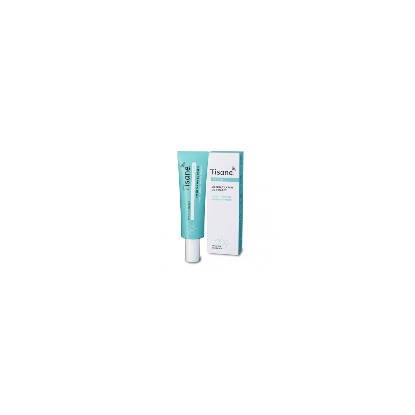 Tisane Dermo to krem stworzony dla osób, które chcą połączyć matowe wykończenie z odżywczą pielęgnacją. Jego gęsta, „miodowa” formuła szybko wtapia się w skórę, pozostawiając satynowo-gładką powłokę i efekt wygładzenia. To matowanie bez przesuszenia — krem jednocześnie redukuje przeznaskórkową utratę wody, wygładza powierzchnię skóry i wspiera redukcję zmarszczek. Po 4 tygodniach regularnego stosowania cera staje się gładsza, bardziej elastyczna i przyjemna w dotyku. Idealny jako krem na dzień pod makijaż oraz dla cer, które lubią miękkie matowe wykończenie zamiast suchego pudrowego efektu.
